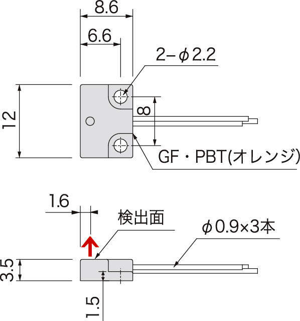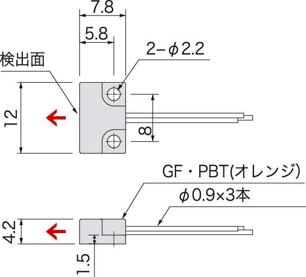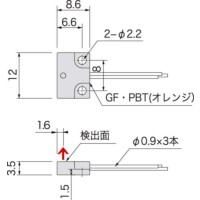 AQL04H 3線式 DC5V 65mV/mT 前面 0.3→4.7V(-40→+40mT) 2.5V±0.15V ±1.2mA MAX 12mA MAX 5μsec(100kHZ) 0±0.04%/℃ 0±0.5mV/℃ 単芯 φ0.9×3本 300mm GF強化PBTオレンジ M2 IP65