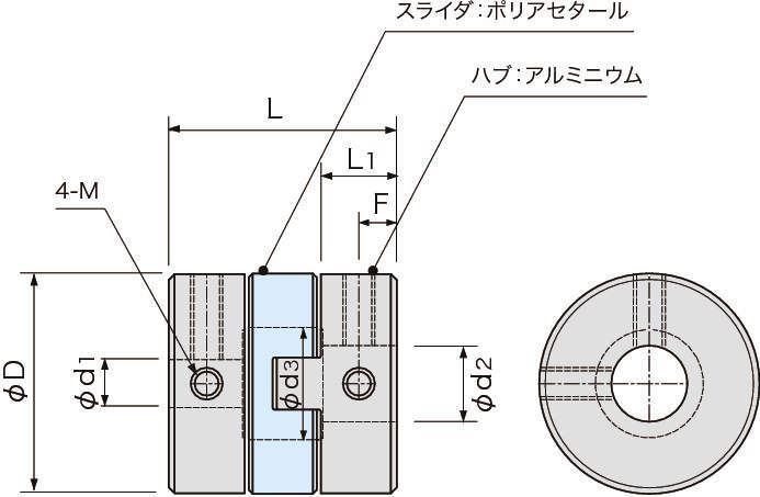 ・アルミニウム製ハブとポリアセタール製スライダとの組み合わせで軸径φ38まで対応。