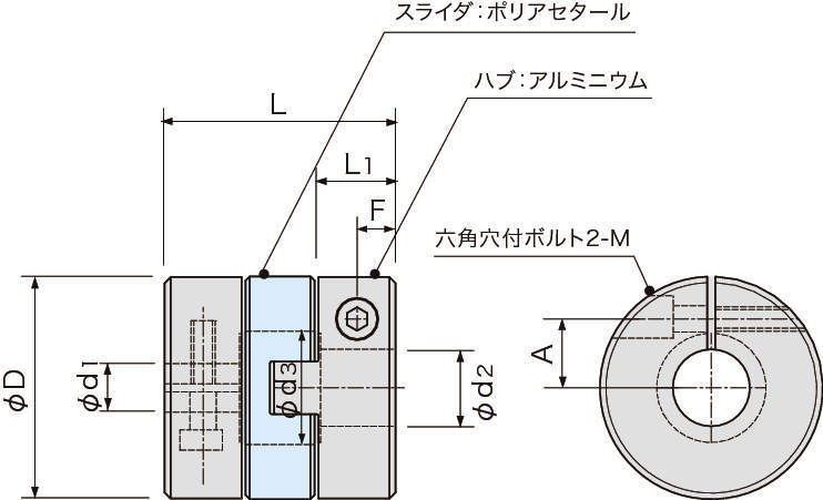 ・アルミニウム製ハブとポリアセタール製スライダとの組み合わせで軸径φ35まで対応。