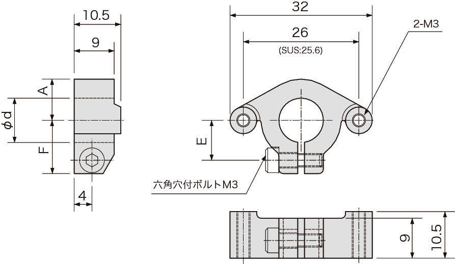 | 型式 | シリーズ | 材質 | φd(H8) | A | E | F |