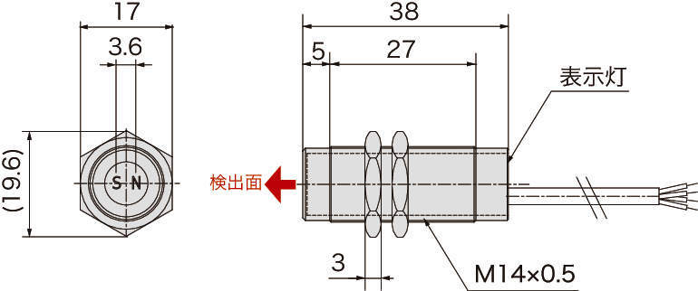 ・動作原理はホールICなので、有極性でS極検出が標準です。