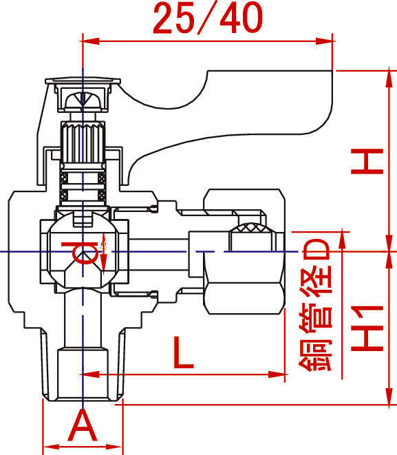 ボールバルブ|Aceball(エースボール) 銅管用リング型 BR(アングル型)
