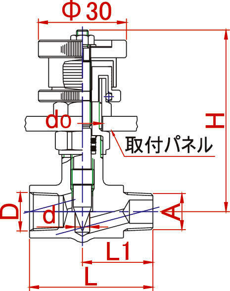 | SM-8022 | ciccoloα 8000シリーズ | 外ネジ×内ネジ | パネル取付+ロック付+開度指示 | SUS304 | 相当品 | 5 | PT1/4(外) | PT1/4(内) | 14 | 24 | 42 | 63 |