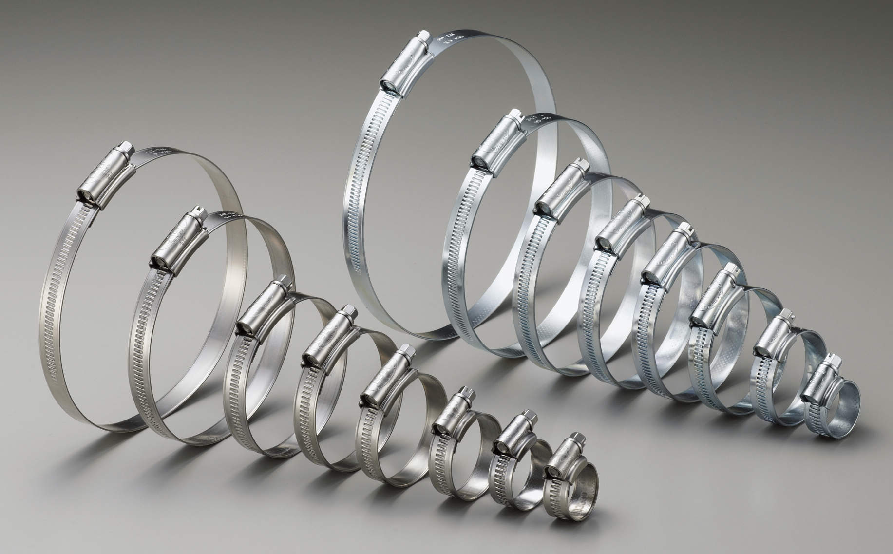 ・各種工場の産業機械や、水まわり用品等のホース接続に必要不可欠なホースクリップ。