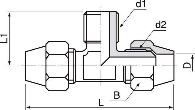 FT-2203 フレアー式継手(二方フレアーチーズ) C3604/C3771 - PT1/4 9.53 21 UNF5/8×18 24 64