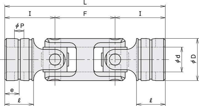 型式 φdH7 φD L l I F e φP