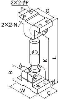 型式 形状 カラー φD A B C W H K L G F 2×2-φP 2×2-M 締付ネジ 耐荷重
