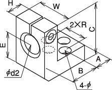 | 型式 | 形状 | カラー | φd2 | A | B | C | E | H | W | 2×R | 4-φ | 締付ネジ |