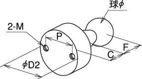 | 型式 | 形状 | カラー | 球φ | φD2 | F | C | P | 2-M×有効 |