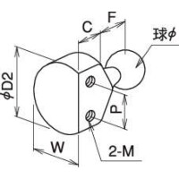 | 型式 | 形状 | カラー | 球φ | φD2 | F | C | P | 2-M×有効 |