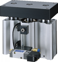 ■耐横荷重に対する高剛性を実現。ガイドロッドとリンクバー(テーブルプレート)はインロー構造にする事で高剛性を強化しています。
