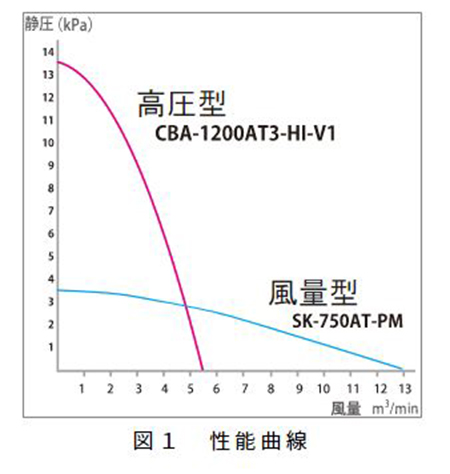 本稿では、風量型と高圧型の違いや特性を、使用例とあわせて説明します。風量型と高圧型の違い