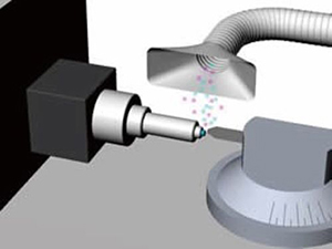 研削加工では広範囲に粉塵が拡散します。広範囲に集塵する場合、風量を大きくする必要があります。