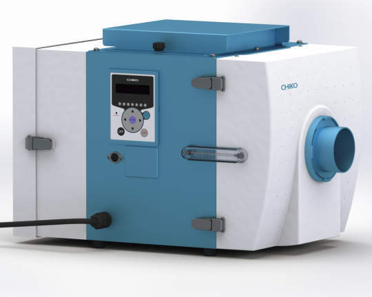 クリーンルーム内でも使用することができ、メンテナンスも簡単な小型高性能集塵機です。CHIKOの風量型集塵機:SKシリーズ
