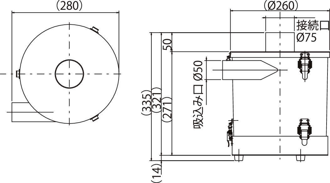 ・吸込み口:φ50mmホース接続。