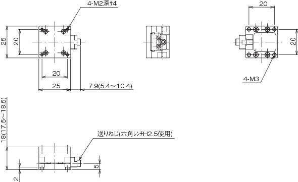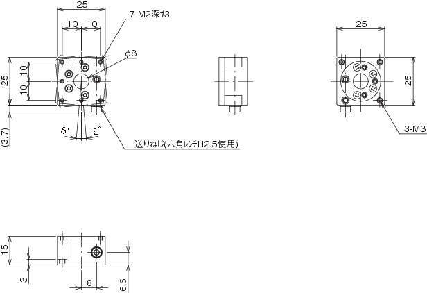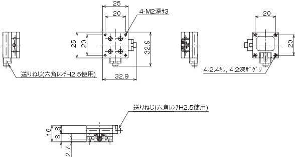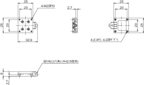 LS-2551FX X軸フィックスステージ 25×25 X軸1方向 8mm ±3mm 0.02kg