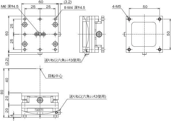 | 移動量/ツマミ1回転 | 上軸約46'16" した軸約33'25" |