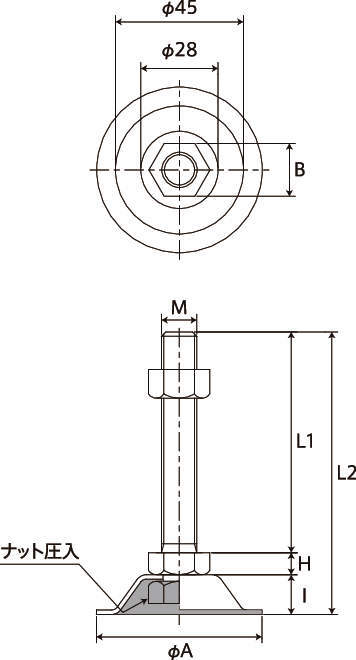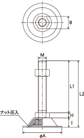 | M(並目) | L1 | L2 | H | I | A | B | ボルト・ナット | 受皿 | ||||||