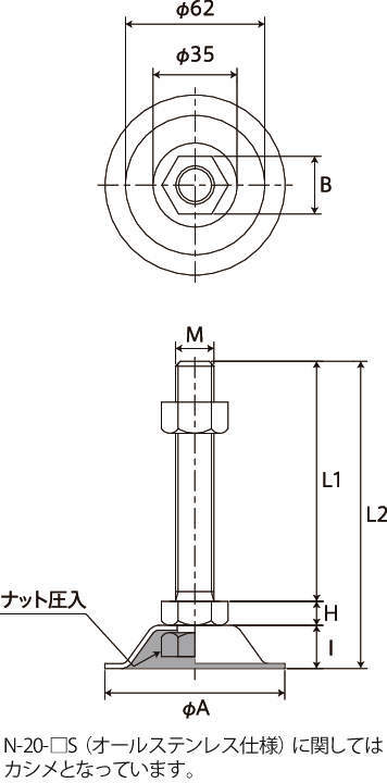 ■N-20-□S(オールステンレス仕様)は、カシメとなっています