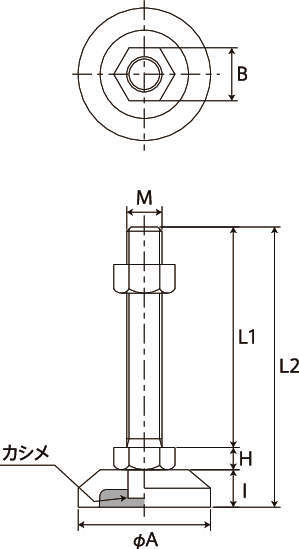 | M(並目) | L1 | L2 | H | I | A | B | ボルト・ナット | 受皿 | ||||||