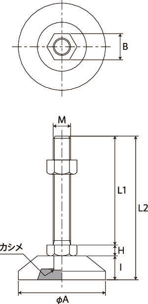 | M(並目) | L1 | L2 | H | I | A | B | ボルト・ナット | 受皿 | ||||||