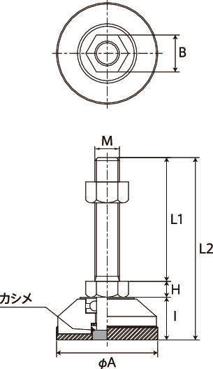 | M(並目) | L1 | L2 | H | I | A | B | ボルト・ナット | 受皿 | ラバー部分 | ||||||