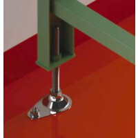 ■最下部のナットがフリーになることでネジ軸の首振りとガタツキをなくし、床の凹凸への対応と架台の横揺れを防止します