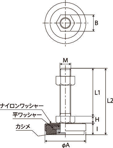 | M(並目) | L1 | L2 | H | I | A | B | ボルト・ナット | 受皿 | 底部 | ||||||