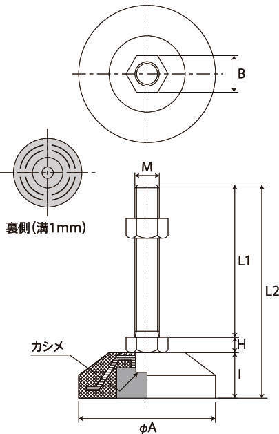 | M(並目) | L1 | L2 | H | I | A | B | ボルト・ナット | 受皿 | ||||||