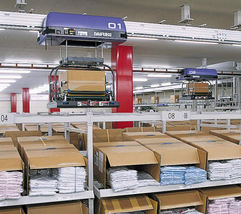 ■自動倉庫を組み合わせ、各種工程間の搬送にご利用頂けます。