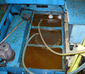 ・工作機械の水溶性クーラントタンク。