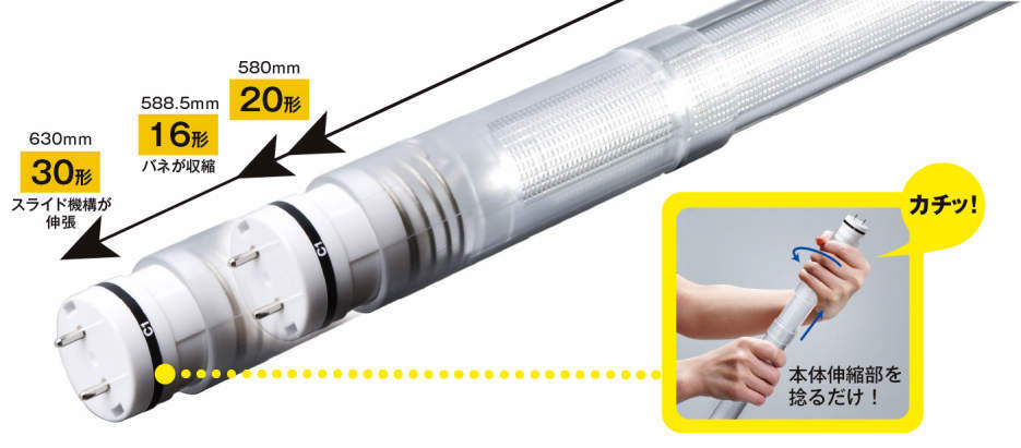 \ 独自開発の伸縮機構により3サイズをこれ1本でOK! /