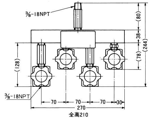 | BV-4N | シャットオフ弁付4連ブランチ | 3/8NPT | 8.5 |