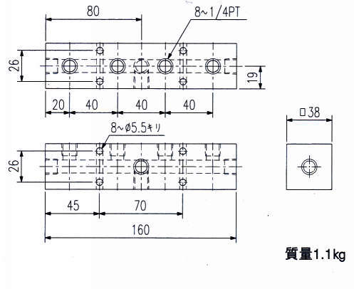 | B-2-1 | 2口・アウトブロック | 3/8NPT | 1.3 |