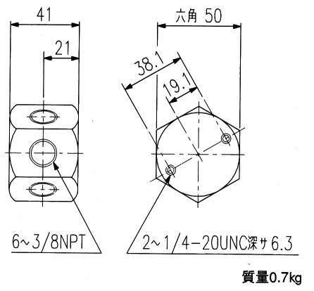 | A-66 | 6方ブランチ | 3/8NPT | 0.7 |
