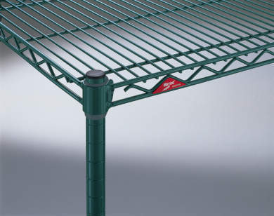・棚板、ポールともに溶融亜鉛メッキ(クロメート処理)、エポキシコーティング仕上げ(防錆加工)。