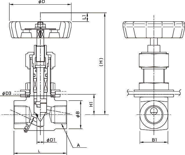 | 材質 | ・ボディ:SUSF316 ・ステム:SUS316 ・ディスク:SUS316 ・ディスクパッキン:PCTFE ・グランドパッキン:PTFE+PCTFE ・Oリング:フッ素ゴム ・パッキン押エ:SUS316 :ハンドル:ADC12 |