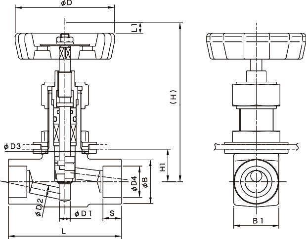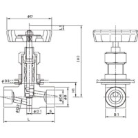 | 材質 | ・ボディ:SUSF316 ・ステム:SUS316 ・ディスク:SUS316(ビジライト盛) ・グランドパッキン:PTFE+PCTFE ・Oリング:フッ素ゴム ・パッキン押エ:SUS316 ・ハンドル:ADC12 |