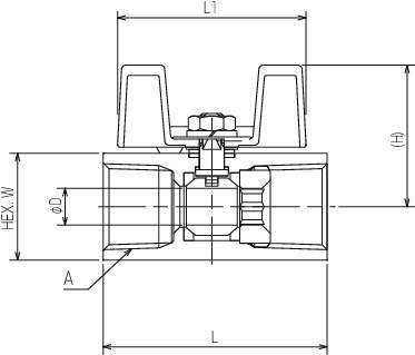 | DBV-12B-BU-R | 二方弁(蝶ハンドル式) | 1.96MPa | 1/4" | Rc1/4 | 5 | 40 | 46 | 30 | 17 | 1.4 | 0.1 |