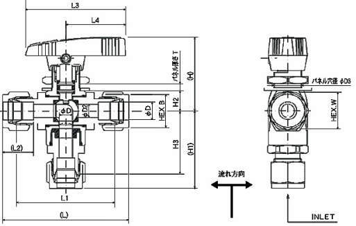 | PUBVT-95-8-V | 手動・三方ボールバルブ | 4.9MPa | V-Lok | 8 | 5 | 5 | 64 | 49 | 16.2 | 16 | 47 | 28 | 38 | 39 | 31.5 | 11 | 14.5 | 17 | 1 | 5 | 1 | 約0.19 |
