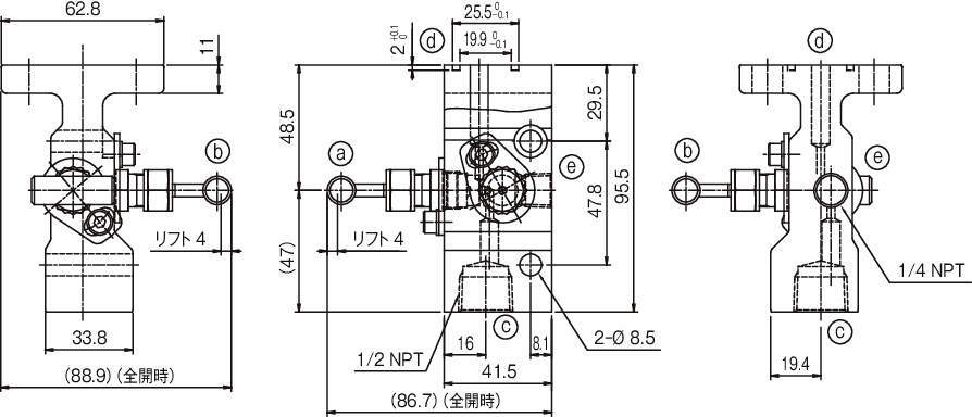 ■プロセス側接続1/2 NPTめねじ、計器取付側接続 MSSフランジ