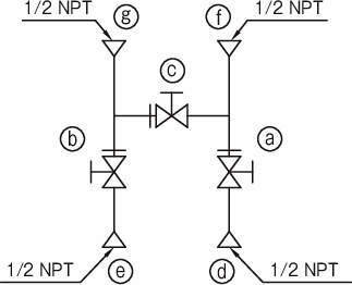 ■各バルブは、マニホールド上の位置に応じて、圧力のブロック、ベント、均圧という異なる機能を有します。