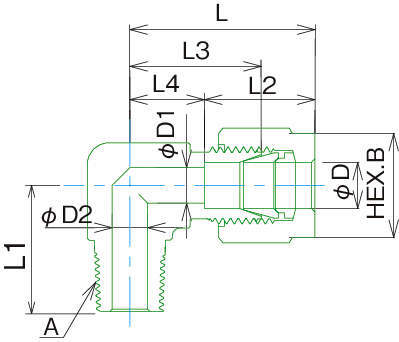 FINELOK・PURE|F900継手 エルボハーフユニオン(Rねじ) F900-L