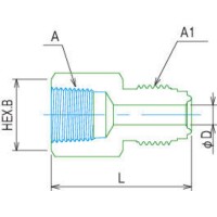 UJR-G-6.35A SUS316Lシングルメルト材 6.35 Rc1/8 9/16"-18UNF 4.8 19 36