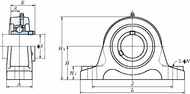 軸受箱 軸受 H L A J N H1 H2 B S 呼び番号 基本定格荷重(kN) 係数f0