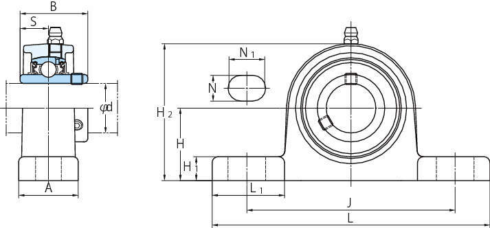 ・UC-S6形軸受は軸受材料にステンレス鋼を用いた耐水性・耐食性に優れた軸受です。