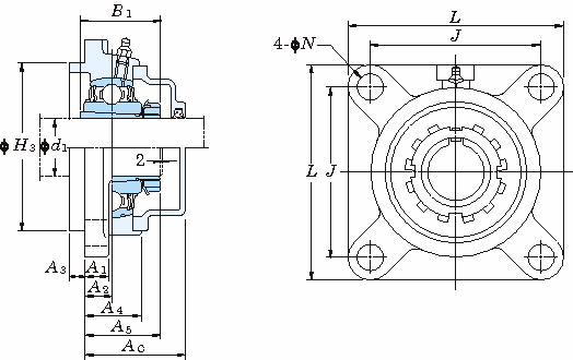 ・UKFSは四角形のフランジおよび取付け面に印ろうを持つ軸受箱を組み合わせたユニットです。
