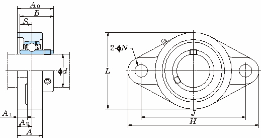 ・UCFLはひし形のフランジで2つの取り付け穴持つユニットです。
