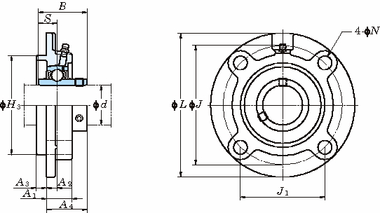 軸受箱 軸受 L H3 J J1 N(±0.2) A1 A2 A3 A4 B S 呼び番号 基本定格荷重(kN) 係数f0