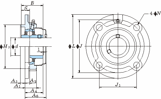 軸受箱 軸受 L H3 J J1 N(±0.2) A1 A2 A3 A4 B S As Ac 呼び番号 基本定格荷重(kN) 係数f0